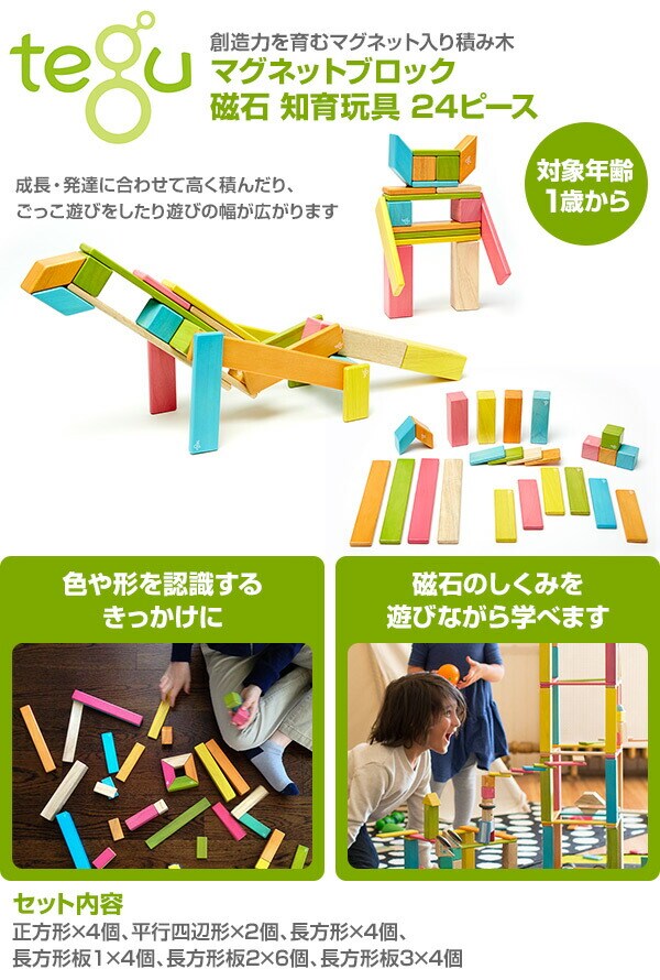 マグネットブロック 磁石 知育玩具 24ピース 対象年齢1歳から TYTU00401 ティント おもちゃ クリスマス 誕生日 赤ちゃん ベビー 木製 天然木 木のおもちゃ マグネット 磁石 ごっこ遊び 1歳 男 女 tegu(テグ) 【送料無料】