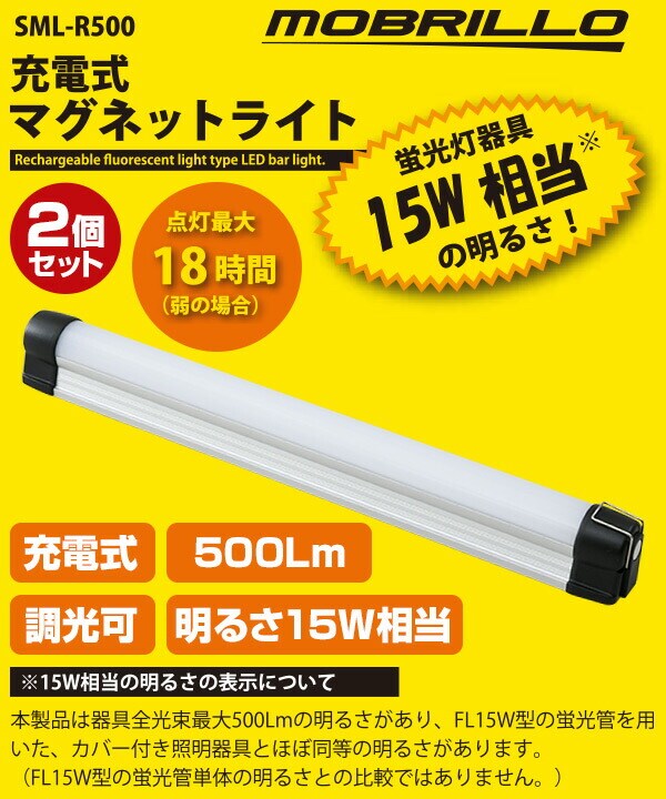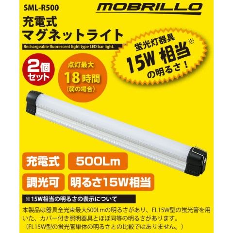 LEDバーライト 2個セット USB 充電式 32cm 500Lm 調光可能 SML-R500*2 LED多目的灯 LEDライト マグネット付き 15W相当 モブリロ(MOBRILLO) 【送料無料】