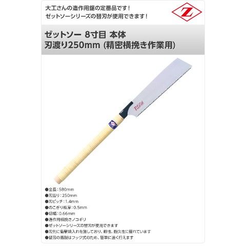 | ゼット販売 ゼットソー 8寸目 本体 刃渡り250mm (精密横挽き作業用) 15006 |