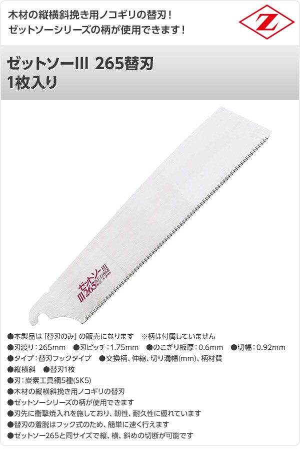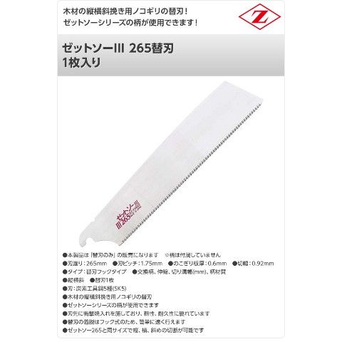 | ゼット販売 ゼットソーIII 265替刃 1枚入り 15076 |