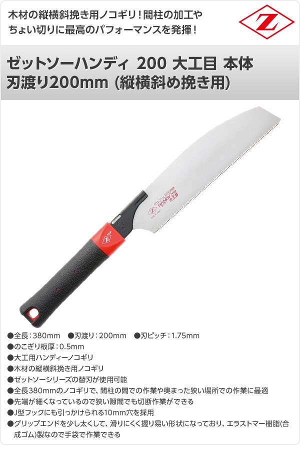 | ゼット販売 ゼットソーハンディ 200 大工目 本体 刃渡り200mm (縦横斜め挽き用) 15086 |
