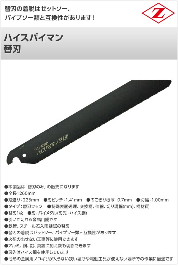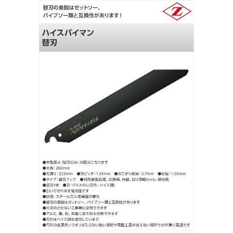 ハイスパイマン 替刃 8105 金属切断用 解体 切断 のこぎり ノコギリ 鋸 切断工具 ゼット販売 【送料無料】