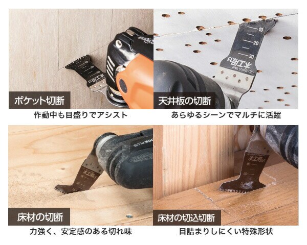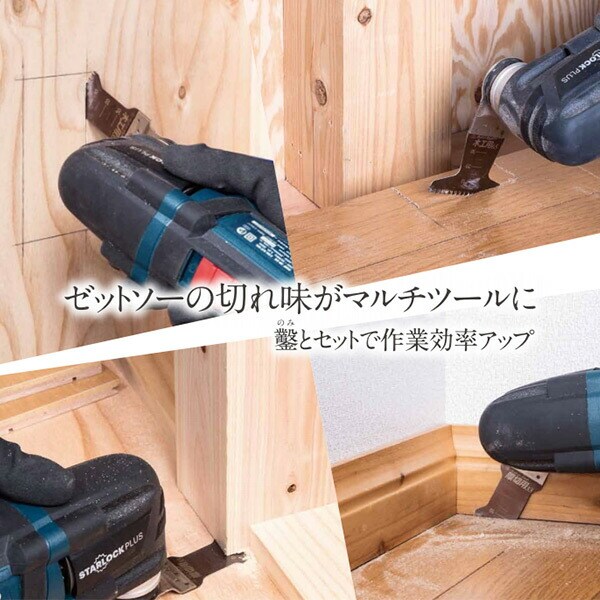 | 商品説明 | ●刃ピッチ:1.75mm ●のこぎり板厚:0.6mm ●切幅:0.92mm ●ゼットソーの切れ味がマルチツールに鑿とセットで作業効率アップ ●木材全般、合板、集成材の切断、サイズ調整 ●狭い場所での作業に最適 ●切り始めがスムーズ、耐久性抜群 ●作動中でも目盛がしっかり見えます ●用途:窓開け、切込切断、床の張り替え作業、天井板の切断、サイズ調整 ●ブレード、ゼットソー、ホルダー取付部、ファイン ●木材全般、コンパネ、窓開け、ハイスバイメタル(江戸目) |