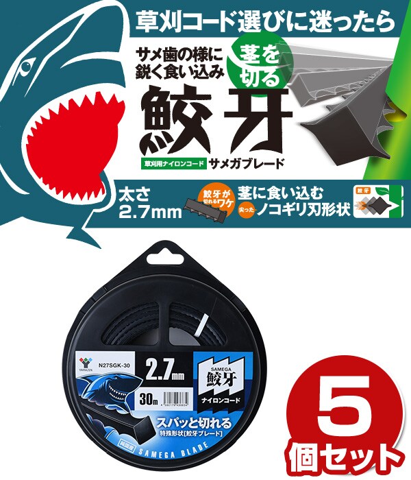 ナイロンコード 鮫牙コード (鮫牙ブレード2.7mm×30m) 5個セット N27SGK-30*5 ナイロンコード 替え刃 替刃 草刈り機 芝刈り機 刈払い機 刈払機 除草 山善 YAMAZEN 【送料無料】