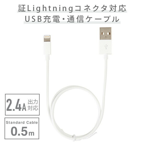 MFI認証Lightningコネクタ対応 USB充電・通信ケーブル 50cm QL-048WH ホワイト ライトニングケーブル ライトニング Lightning 充電ケーブル iPhone iPad iPod USBケーブル QTJ クオリティトラストジャパン 【送料無料】