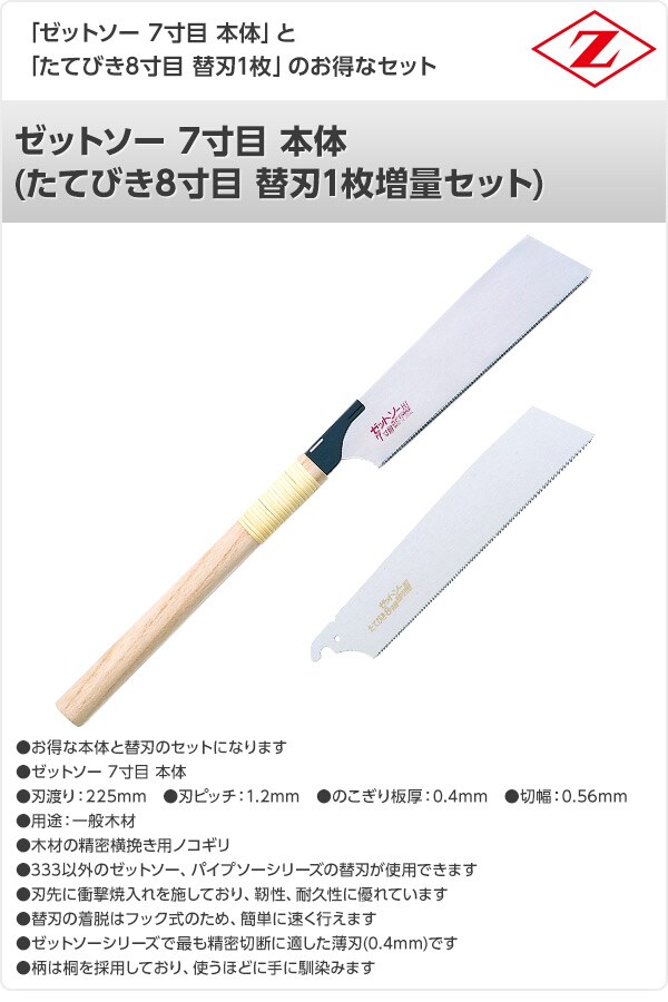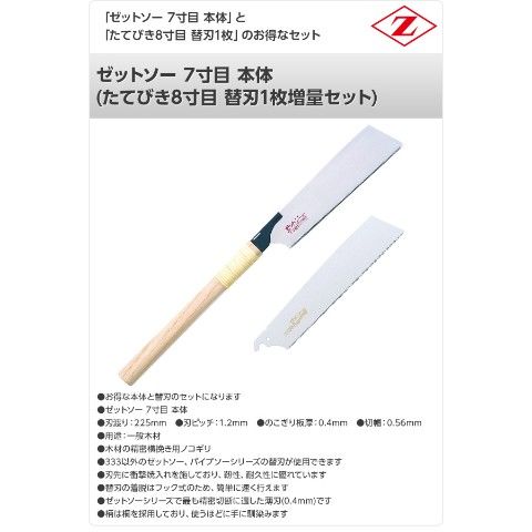 | ゼット販売 ゼットソー 7寸目 本体 (たてびき8寸目 替刃1枚増量セット) 15018+15010 |