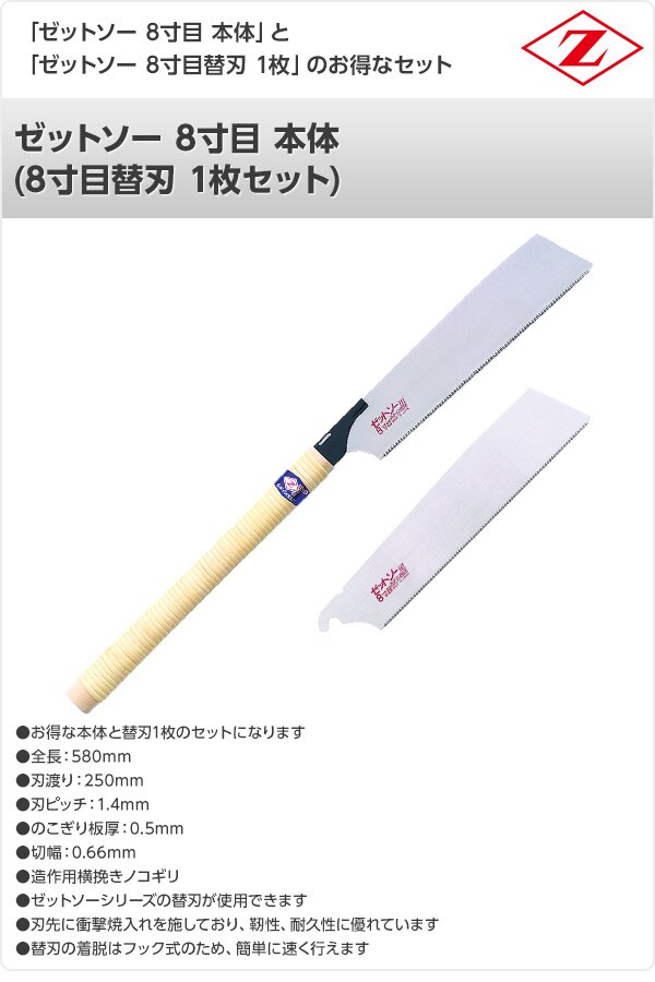 | ゼット販売 ゼットソー 8寸目 本体 (8寸目替刃 1枚セット) 15006+15007 |