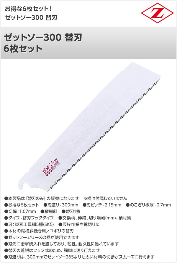 ゼットソー300 替刃 6枚セット 15012*6 ゼット販売 【送料無料】