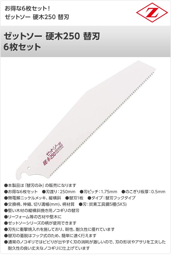 | ゼット販売 ゼットソー 硬木250 替刃 6枚セット 15204*6 |