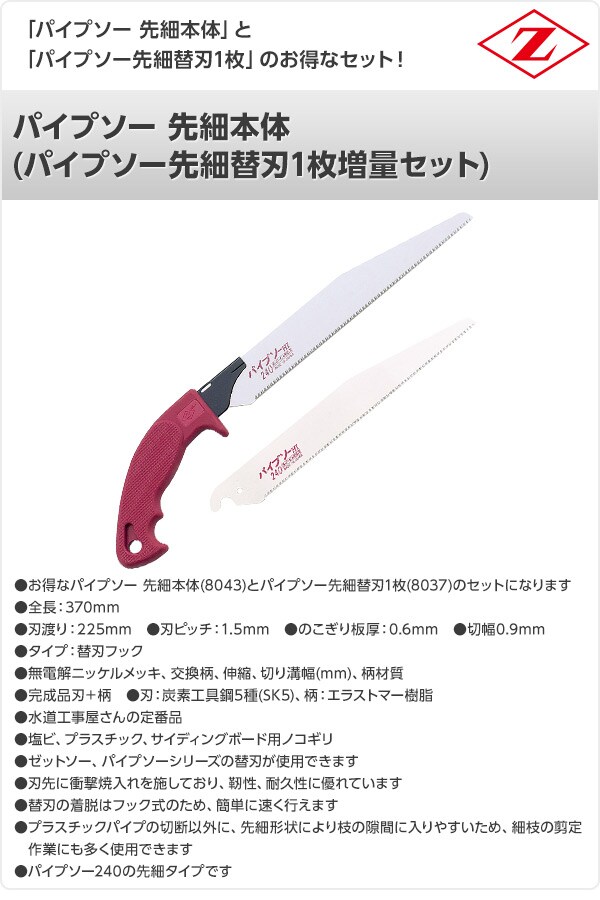 パイプソー 先細本体 (パイプソー先細替刃1枚増量セット) 8043+8037 プラスチック配管切断用 解体 切断 のこぎり ノコギリ 鋸 切断工具 ゼット販売 【送料無料】