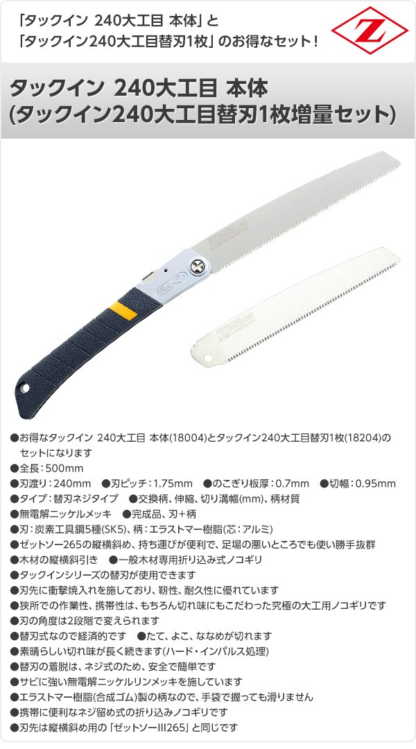 | ゼット販売 タックイン 240大工目 本体 (タックイン240大工目替刃1枚増量セット) 18004+18204 |