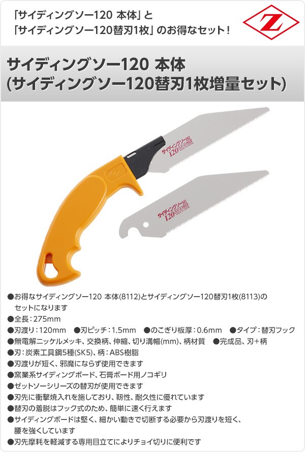 | ゼット販売 サイディングソー120 本体 (サイディングソー120替刃1枚増量セット) 8112+8113 |