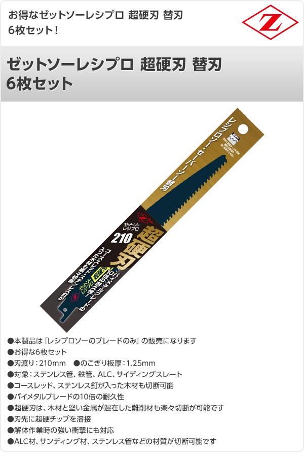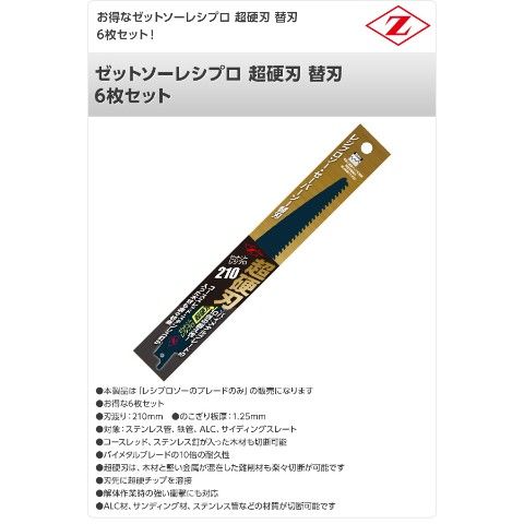 ゼットソーレシプロ 超硬刃 替刃 6枚セット