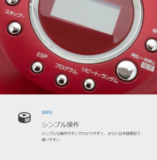 | 商品説明 | ●電源:単3形乾電池×2個 DC3V、DC入力4.5V 700mA、USB入力5V 500mA ●音声出力端子:Ф3.5mmステレオミニプラグ ●外部電源端子:入力5V/1A プラグ形状:外径Ф4.0mm・内径Ф1.7mmセンタープラス ※ACアダプターは、上記仕様に合った市販品をお求めください ●CD再生可能ディスク:音楽CD、CD-R、CD-RW ※MP3/WMA/WMVなどに圧縮されたファイルは再生できません ●付属品:取扱説明書(保証書付き)、イヤホン、電源用USBコード |