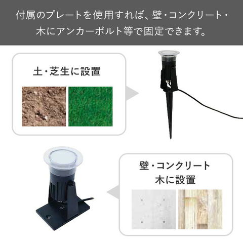 | 商品説明 | ●地を照らすガーデンライトの追加用単品販売のページです ●プレートを使って壁や木、アンカーを使って土や芝生に設置可能です ●プレートを使って壁や木、アンカーを使って土や芝生に設置可能です ●スタートキットに追加してライトアップの幅を広げましょう ●3つのライトを設置したい場合:スタートキット×1(ガーデントライライトシリーズ)、追加用ライト×2、追加用分岐コード(GT-ZBC3)×1●IP67の防塵防水性能なので雨天でも問題なく使用できます ●屋外用PSE認証を取得済みなのでお庭でも安全にお使い頂けます ●お庭の電源に接続するだけで誰でも簡単にライトアップが楽しめます ●ライトは耐久性の高いアルミ素材 ●LED寿命が50,000時間なので長期間交換が不要です ●電気代も1年で約600円しかかかりません ●ACコントローラーで夜間に自動ライトアップが可能 ●自動点灯や消灯、タイマー消灯等のパターン切り替えが可能です ●防塵防水性能:IP67 ●LEDタイプ:COB LED×1 ●光束:200lm±10%・3W±10% ※ダウンビームレンズ装着時:70lm±10%●光色:電球色(GD) ●LED寿命:50,000時間 ※1日11時間点灯で約12年間使用可能です LED電球を交換することはできません ●電気代1年間で約600円 ※1台追加毎に年間+約400円 ※1kwh=27円換算、1日当たり11時間点灯 ●コードの長さ:5m ●ライト角度:180度調整可能 ●屋外用PSE認証取得済み●セット内容:ガーデンライト本体×1のみ |