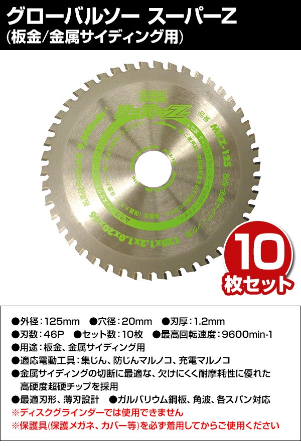 グローバルソー スーパーZ (板金/金属サイディング用) 10枚入り 外径125×内径20×刃厚1.2mm MKZ-125*10 チップソー 切断 替刃 電動工具用 GLOBAL SAW モトユキ 【送料無料】