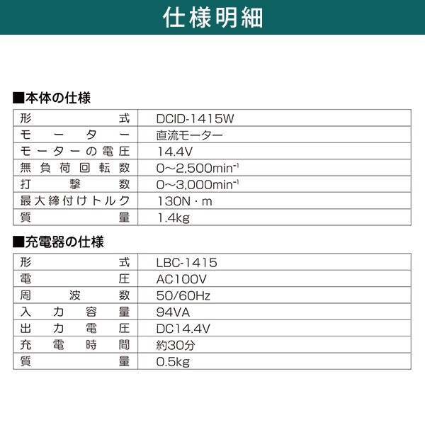 | 新興製作所 充電式インパクトドライバー LEDライト バッテリー2個付 DCID-1415W ブラック |