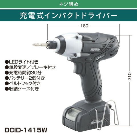 充電式インパクトドライバー LEDライト バッテリー2個付 DCID-1415W ブラック インパクトドライバー ドライバ 電動ドライバー 電気ドライバー DIY 電動工具 新興製作所 【送料無料】