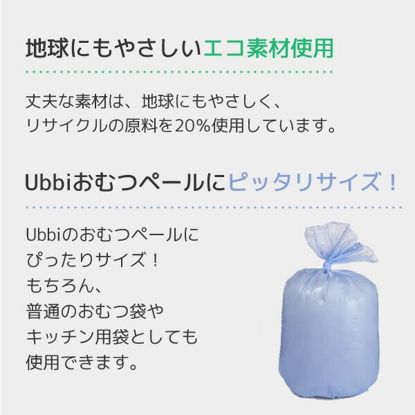 | 商品説明 | ●UBBIおむつペールにぴったりサイズ!もちろん普通のおむつ袋やキッチン用袋としても使用可能 ●地球にもやさしく、リサイクルの原料を20%使用しています ●75袋入り ●おむつ約3150個分 (※1枚に約42個のおむつが入ります) ※おむつペールは付属しません |
