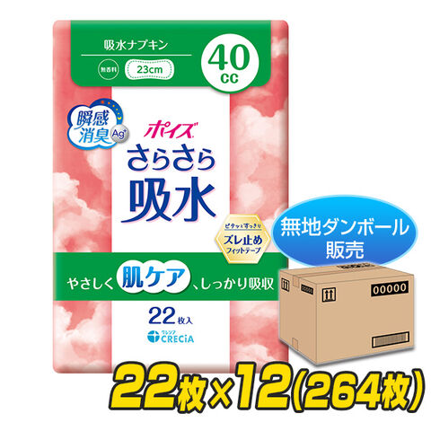 | 日本製紙クレシア ポイズ さらさら吸水 吸水ナプキン 40cc 無香料 日本製 22枚×12(264枚) 【無地ダンボール仕様】 |