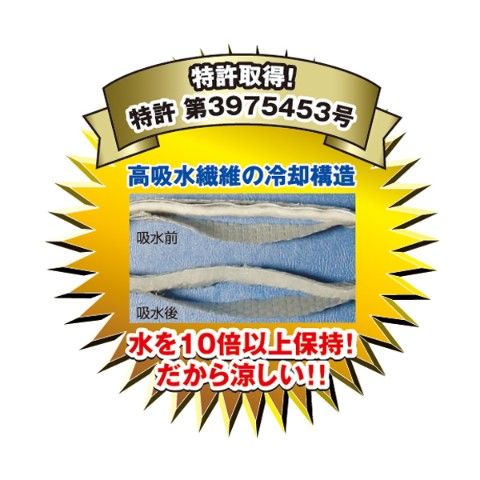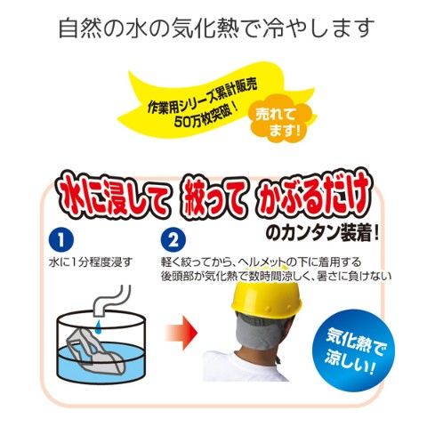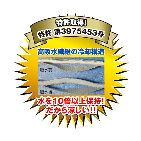 | 商品説明 | ●サイズ:フリーサイズ ●頭にかぶるタイプ ●自然の水の気化熱で冷やします ●水に浸して絞ってかぶるだけで簡単に熱中症対策 ●頭部メッシュ部分「ミューファン」の銀イオンの作用で帯電を防止します ●抗菌・防臭で清潔感アップ ●吸汗速乾 ●抗菌防臭 ●ディンプル加工の特殊な編みメッシュ生地を表面に使用 ●高吸水繊維の気化を助長・爽快感が持続します |