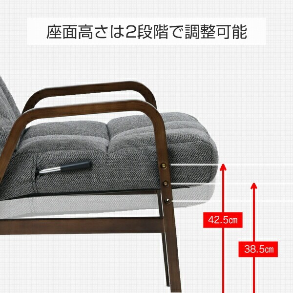 | 商品説明 | ●背もたれ&ヘッドレストがリクライニングする高座椅子 ●背もたれはレバーで8段階リクライニング ●ヘッドレストは14段階リクライニング ●座面高さ2段階調整可能(38.5/42.5cm) ●肘掛け付きで立ち座りラクラク ●座面サイズ:幅51 奥行41cm ●背もたれサイズ:幅51 長さ65cm ●背もたれ折りたたみ式 ●折りたたみ時サイズ:幅58.5 奥行66 高さ54cm ●肘掛け幅:3.5cm ●耐荷重目安:静止90kg |