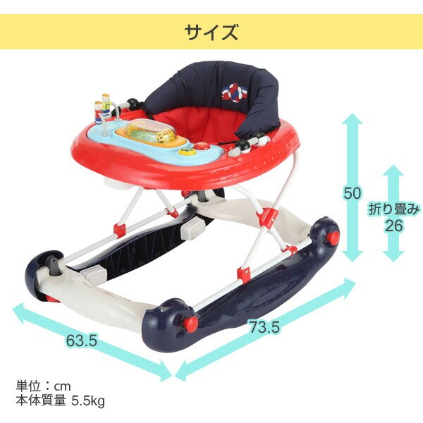 | 商品説明 | ●折りたたみサイズ:幅63.5×奥行73.5×高さ26cm ●使用年齢:7-15か月以下 ●高さ調節3段階 (ウォーカーで利用時:38.5cm/40cm/41.5cm、バウンサーで使用時:31cm/42.5cm/44cm ※テーブル上端まで) ●乗り口サイズ:24×23cm ●ロッキング機能付き ●段差ストッパー付き |