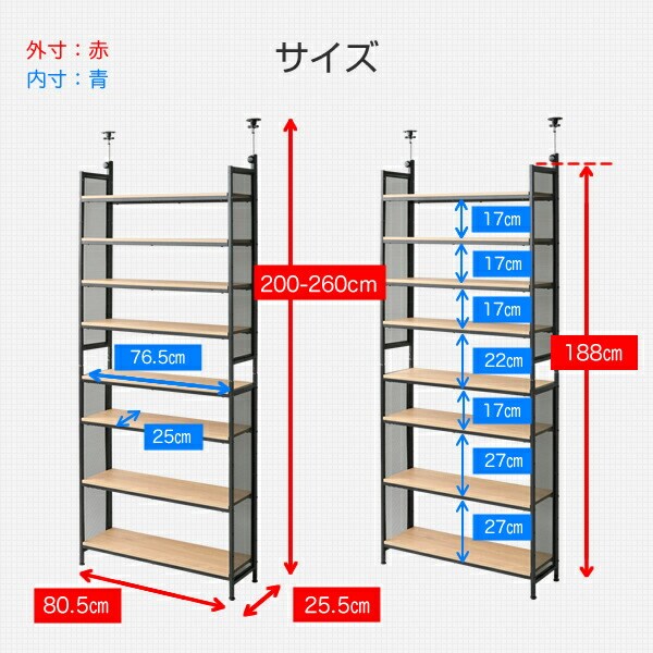 | 本体サイズ | 幅80.5×奥行25.5×高さ200-260cm 重量24.5kg |