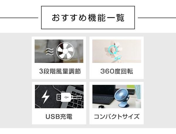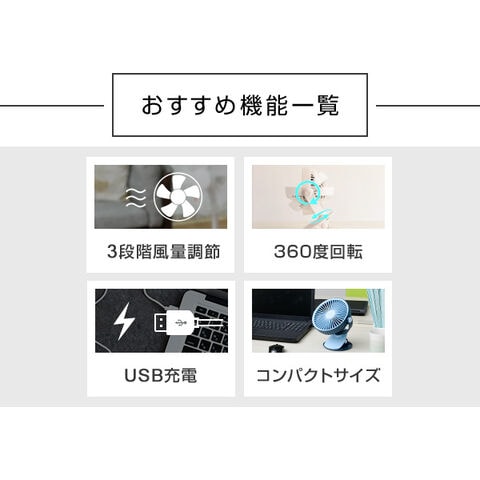 | 商品説明 | ●電源:USB電源 ●電池容量:2000mAh ●操作方法:タッチスイッチ方式 ●羽:11cm 5枚 ●風量:3段階(弱・中・強) ●クリップ扇風機・卓上扇風機の2WAY仕様 ●メーカー保証:1年間 ※2025年6月より型番をYJ-CT113→YJ-CT114に変更しております ※仕様変更点はございません |