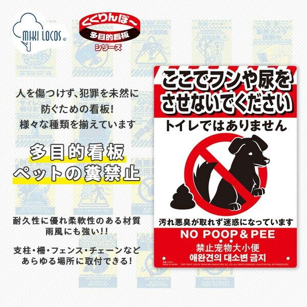 ミキロコス 多目的看板 ペットのフン尿禁止 K-041 標識 看板 カンバン 樹脂プレート 標識プレート 警戒標識 注意喚起看板 規制標識 犯罪防止 迷惑行為防止 交通安全 ポスター 張り紙 高芝ギムネ製作所 【送料無料】
