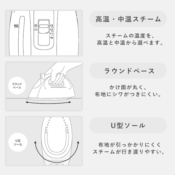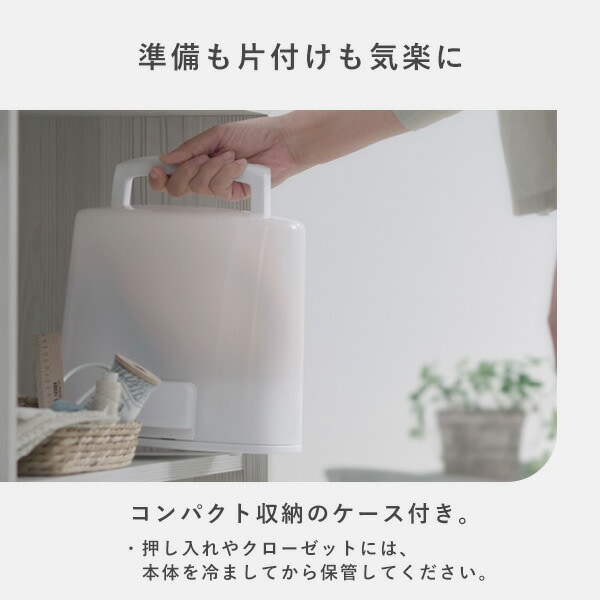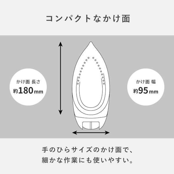 | 本体サイズ | 【アイロン本体】 約幅9.5×奥行21.5×高さ12cm 重量:約750g 【収納時】 約幅17×奥行23.5×高さ22cm 重量:約1.8kg |