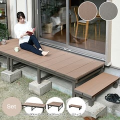 | 旭興進 ウッドデッキ (幅180×奥行90cm) ステップ付き 1890&AWS-9036 ブラウン/アッシュブラウン |