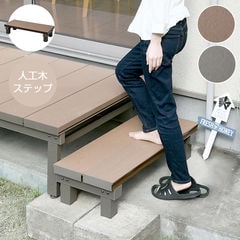 | 商品説明 | ●耐久性がよくローメンテナンスで安全な木材である人工木を使用し、見た目・質感を天然木調になるようこだわった人工木デッキ(180×90cmタイプ)1台とステップ1台のお得なセットです ●カラーは2色(ブラウン、アッシュブラウン)よりお選びいただけます ●デッキは1枚あたりの板材が板幅22cmと幅広設計で板厚は4cmと厚みのある仕様にしました ※ステップは板幅18cm ●連結設置可能:付属の連結プレートでデッキを2台、3台など連結して使用することができます ※ステップとデッキを連結する際はデッキの高さを41.5cm以内にしてください ●資材表面にはサンディング加工が施されており、天然木の質感を再現しています ●天然木製と比べると対候性がよく、色褪せやチョーキングが少なく、色のバラつきも減少、塗替作業がいりません ●土台の脚は腐食、錆びに強いアルミ素材を採用 ●高さ調整可能なアジャスター付き:最大40mmの範囲で調整可能です ※ステップにはアジャスター調整機能は付いておりません ●天然木製のように節やササクレ、ひび割れの心配がなくお子様のいる家庭でも安心してご使用いただけます ●害虫による被害がほとんどありません ※日差しの強い日は表面が熱くなる場合があります 必ず履物を履いてご使用ください ※2021年8月18日販売分より「アッシュブラウン」が新色として販売開始になりました |