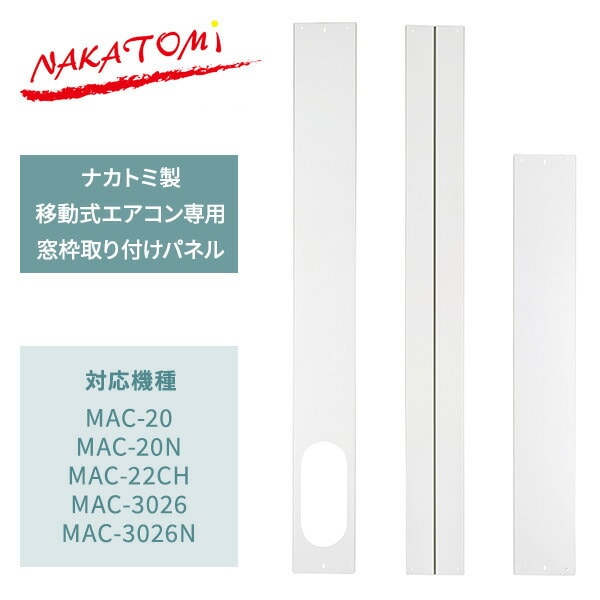 | 商品説明 | ●適応機種:MAC-20/MAC-20N/MAC-22CH/MAC-3026/MAC-3026N ●窓枠高さ135~240cmまで使用可能 ●付属品:テラス窓用パネルA×1/B×1/C×1、蝶ナット×2、四角ボルト×2、パネル固定ネジ×4 ●窓高さ135~190cmまでの場合、窓パネルA・B使用/191~240cmまでの場合、窓パネルA・B・Cを使用 ●取り付けには標準付属品のレール用アタッチメント×2、ネジ×4 が必要です ●はずれ防止のため、パネル2枚使用時は14cm以上、パネル3枚使用時は26cm以上のパネル同士を重ね合わせてください ※本商品に移動式エアコン本体は付属しておりません。 ※2025年3月より最大対応サイズが190cmから240cmに変更となっております。 |