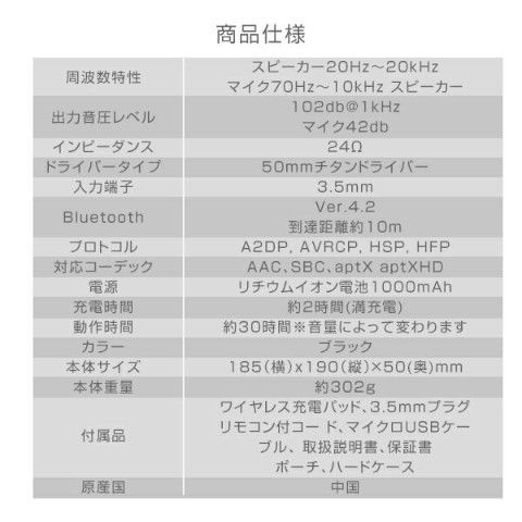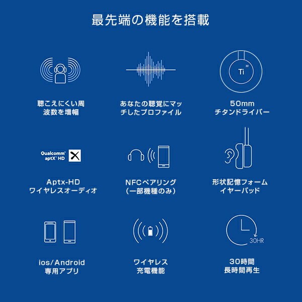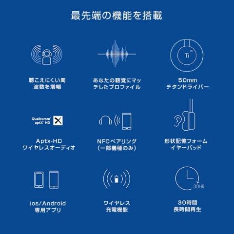 | 商品説明 | ●聴覚を測定して最適の音質に調整ができるヘッドホン ●アプリと連動して聴覚測定ができます ●低音域から中音域各8つの周波数帯を左右それぞれの耳で測定します ●50チタンドライバー使用でクリアな音を忠実に再現 ●ワイヤレス充電対応、付属のパットに置くだけで充電 ●形状記憶フォーム製のイヤーパッドで快適な着用感 ●NFC機能を持つスマホとヘッドホンを簡単につなげるスマートペアリング機能搭載 ●連続再生約30時間 ●付属品:ワイヤレス充電パッド、3.5mmプラグリモコン付コード、マイクロUSBケーブル、保護ポーチ、ハードケース |