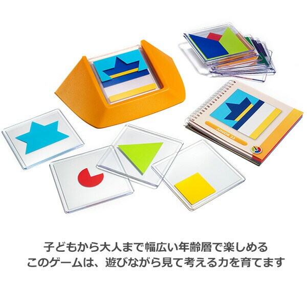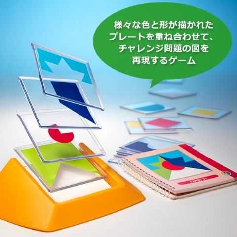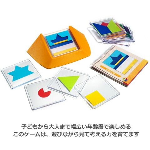 | 商品説明 | ●視覚認知、計画、問題解決、集中力等が身に付く、100の問題にチャレンジしよう ●「遊び方・ルール」説明書付き ●対象年齢 : 5歳以上 ●重ねる順番がポイント!様々な色と形が描かれたプレートを重ね合わせて、チャレンジ問題の図を再現するゲームです ●正しい順番でディスプレイホルダーにセットしましょう ●子どもから大人まで幅広い年齢層で楽しめるこのゲームは、遊びながら見て考える力を育てます ●セット内容:18種類のプレート、ディスプレイホルダー、ゲームガイド (チャレンジ問題 : 100問)、説明書 |