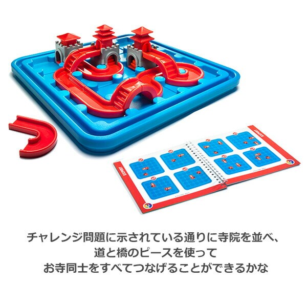 | 商品説明 | ●計画、空間認識、問題解決、柔軟な思考、集中力等が身に付く、80の問題にチャレンジしよう ●「遊び方・ルール」説明書付き ●対象年齢 : 7歳以上 ●道と橋のピースで寺院をつなごう ●チャレンジ問題に示されている通りに寺院を並べ、道と橋のピースを使ってお寺同士をすべてつなげることができるかな ●80のチャレンジ問題をクリアしましょう ●セット内容:ゲームボード、出入り口の異なる寺院 3個、道のパズルピース 3個、橋のパズルピース 4個、ゲームガイド (チャレンジ問題 : 80問)、説明書 |