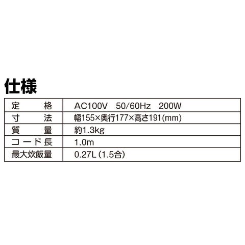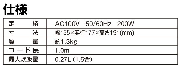 ●付属品:取扱説明書、しゃもじ、計量カップ