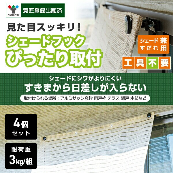 シェード用 フック ぴったり取付タイプ (4個セット) NYZF-PT*2 シェードフック 目隠し 日よけ 日除け オーニング 山善 YAMAZEN 【送料無料】
