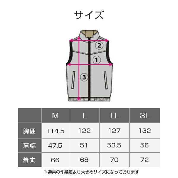 ※通常の作業服より大きめのサイズになっています