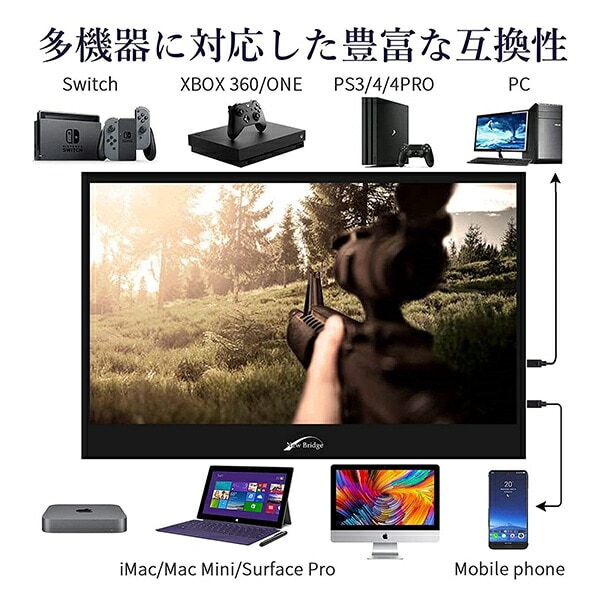 モバイルモニター 15.6インチ モバイルディスプレイ 1080P 日本設計 NB-156BK ポータブルモニター MHL対応 Type-C/HDMI-mini ゲームモニター IPSパネル (PS4 / XBOX/Switch/PC/タブレット対応) 薄型 New Bridge ニューブリッジ