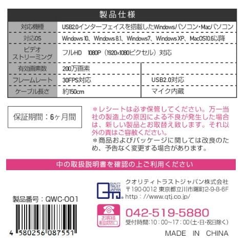 | QTJ クオリティトラストジャパン カメラ webカメラ WEB リモートワーク テレワーク フルHD QWC-001 BK |