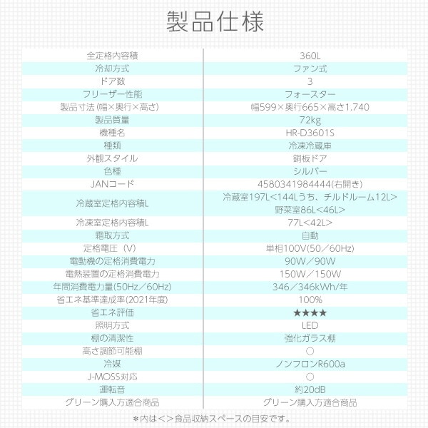 冷蔵庫 3ドア 冷凍冷蔵庫 360L (冷蔵室197L/野菜室86L/冷凍室77L) HR-D3601S 冷凍庫 冷蔵庫 家庭用 業務用 一人暮らし 二人暮らし 新生活 右開き スリム 自動霜取り ファン式 ハイセンスジャパン Hisense 【送料無料】のレビュー