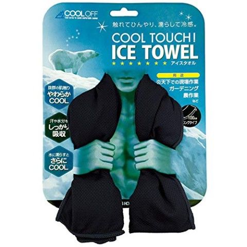 ひんやりタオル 首 1枚 アイスタオル (ブラック/ブルー) 130 伸縮性 接触 冷感 通気 メッシュ 汗 タオル生地 ユニワールド 【送料無料】