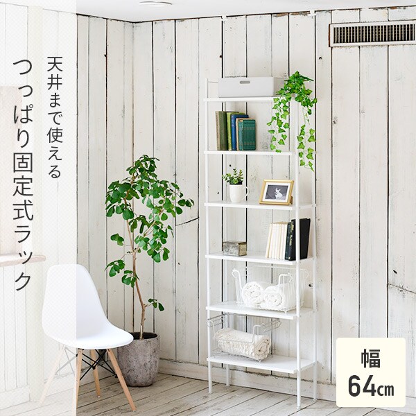 頑丈 突っ張り シェルフ 棚5段 幅64 奥行き30 高さ210-260 cm RTCR-6030 ホワイト つっぱりラック 突っ張りラック 幅60タイプ シェルフ 収納 つっぱり棚 壁面収納 省スペース 山善 YAMAZEN 【送料無料】