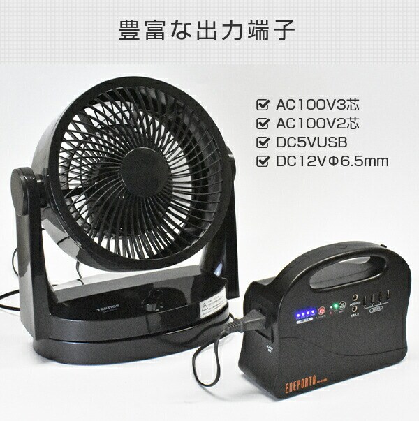 | 商品説明 | ●定格入力|DC15V/2A(最大) ●定格出力|AC:AC100V 50Hz 1A、DC(USB):DC5V/3.1A ●インバーター|出力容量(最大):100W ●出力波形:正弦波 ●出力端子|AC:アース付3芯/2芯DC:外径:O6.5mmセンターピン:O2.0mmUSB:Type-A ●充電時間(約)|8時間 ●機器の使用条件/環境等により使用時間は異なります ●出力容量100W ●大容量リチウムイオン充電池内蔵 ●付属品:本体、充電用ACアダプタ、シガーライターアダプタ(メス)、取扱説明書(保証書付) |