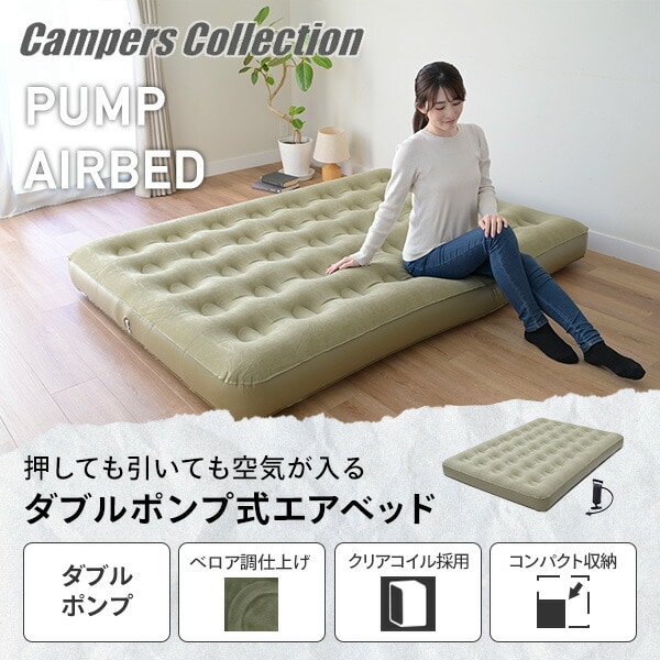 ポンプ付き エアベッド ダブル HPB-D カーキ エアーベッド アウトドア キャンプ 寝具 来客 エアーマット エアマット 防災 山善 YAMAZEN キャンパーズコレクション 【送料無料】
