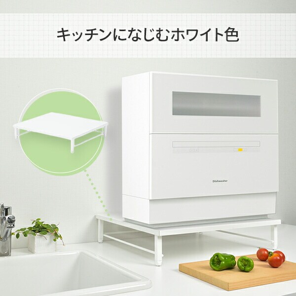 | 商品説明 | ●設置型食洗器の置き台に便利なスペースラック ●奥行45cmまでのシンクを跨げる設計 ●キッチンに馴染みやすい、ホワイトタイプ ●天板耐荷重:30kg ●天板下には隙間ができて、小皿やラップなどを収納可能 ●天板下は手が入る高さ設計、拭き掃除やお手入れもラクラク ●脚部にはアジャスター付き、約1cmまでのがたつきを緩和 ●天板下内寸:幅45.4 奥行43.6 高さ10cm ●設置サイズ(脚部の位置):幅50 奥行42.3cm ●アジャスターを含まない本体高さ=11cm 【対応目安】天板サイズ 幅50.5 奥行45.5cm 例) NP-TCR4-W, NP-TH3-W, NP-TH3-N, NP-TZ200-W, NP-TZ200-S, SS-M151, SDW-J5L, ISHT-5000-W, STTDWADW, ADW-GM1, VS-H021, AX-S3W |