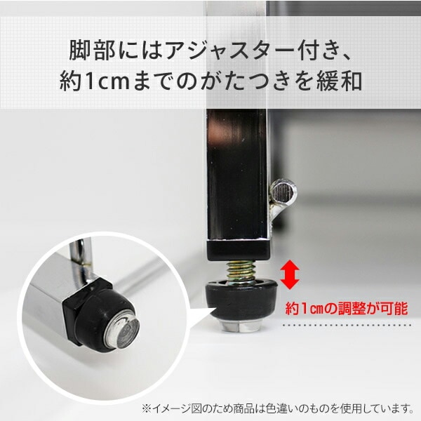 | 材質 | 天板: スチール(粉体塗装) 脚部:スチール(クロムめっき) 滑り止め:シリコンゴム |