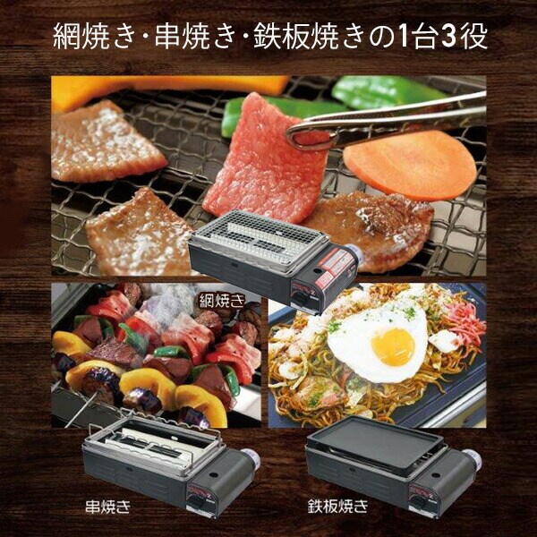 卓上カセット ガスコンロ 焼きまへんか2 KC-112(BK) 網焼き 串焼き 鉄板焼き カセットコンロ カセットボンベ プレート 鉄板焼 焼肉 炉端焼き 焼鳥 焼き鳥 海鮮焼き グリル アウトドア レジャー ニチネン 【送料無料】